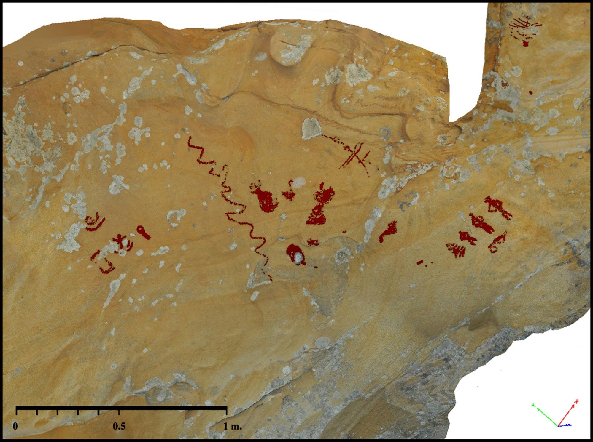 3. Fotogrametría: Para cada cavidad y pared pintada se ha generado un modelo métrico 3D mediante Agisoft PhotoScan Professional (v. 1.4.5). Con estas representaciones de geometría espacial hemos obtenido ortofotos de los paneles decorados.