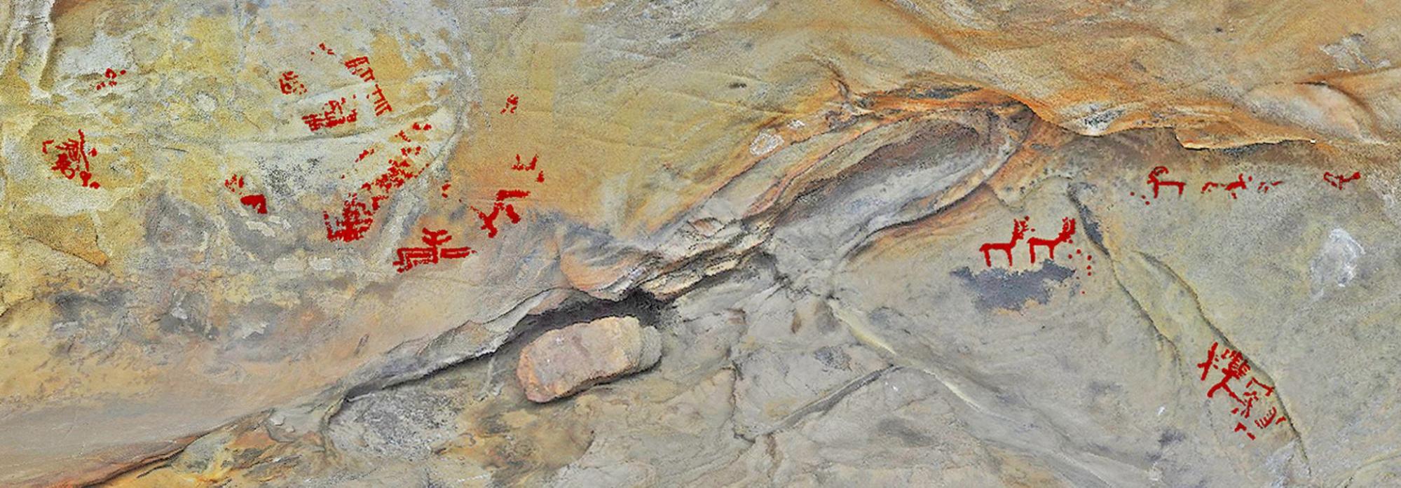 1. Los autores seleccionaron recintos que no contuvieran pinturas anteriores, caso de la cueva de la Rosa, Diosa I, Diosa II, Mujeres II y Canuto Ciaque II. Incluimos Mujeres II, pues el panel con antropomorfos de brazos alzados se sitúa en un habitáculo bien diferenciado de las otras manifestaciones. Solo en Carboneros o Canuto Ciaque I se observan motivos más antiguos; algunos sirvieron para completar los nuevos paneles y otros, no útiles o carentes de sentido para los nuevos autores, fueron disimulados.